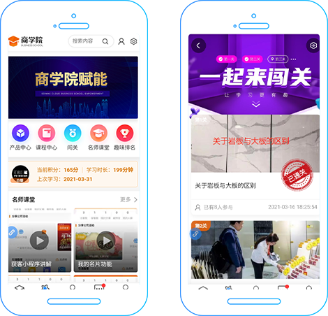 本系統(tǒng)可以將品牌下相關(guān)產(chǎn)品知識(shí)、最新產(chǎn)品介紹,以及營(yíng)銷干貨、名師視頻分享課程等,都通過(guò)培訓(xùn)內(nèi)容的形式輸出給全線經(jīng)銷商、門店。通過(guò)營(yíng)銷干貨、名師直播課等的輸出,可對(duì)標(biāo)渠道招商政策中關(guān)于營(yíng)銷培訓(xùn)的一部分扶持。而商學(xué)院所有的學(xué)習(xí)項(xiàng)目,都可以通過(guò)趣味闖關(guān),激勵(lì)參與者不斷突破升級(jí),讓經(jīng)銷商與品牌方形成一定黏度。