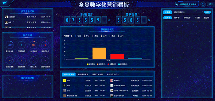 通過(guò)大區(qū)還可知下面的經(jīng)銷商、門店的情況,而經(jīng)銷商、門店也可知本店內(nèi)全員的營(yíng)銷獲客數(shù)據(jù)詳情。方便總部制定激勵(lì)經(jīng)銷商、門店的營(yíng)銷政策、活動(dòng)政策,而經(jīng)銷商、門店也可以對(duì)導(dǎo)購(gòu)的銷售數(shù)據(jù)進(jìn)行有效獎(jiǎng)懲,從而更有利于一線銷售。整套運(yùn)管系統(tǒng),包括了全員數(shù)字化營(yíng)銷看板、客戶管理大數(shù)據(jù)看板、營(yíng)銷活動(dòng)專屬看板、區(qū)域門店專屬看板、在施工地管理看板、龍虎榜和BOSS數(shù)據(jù)看板。