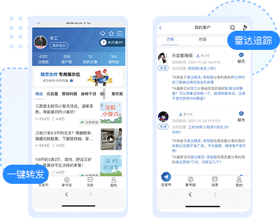 海量素材,都是業(yè)主想看、喜歡看的,導(dǎo)購(gòu)一鍵轉(zhuǎn)發(fā),再也不愁沒有內(nèi)容啦!營(yíng)銷雷達(dá) 實(shí)時(shí)監(jiān)控業(yè)主看了什么