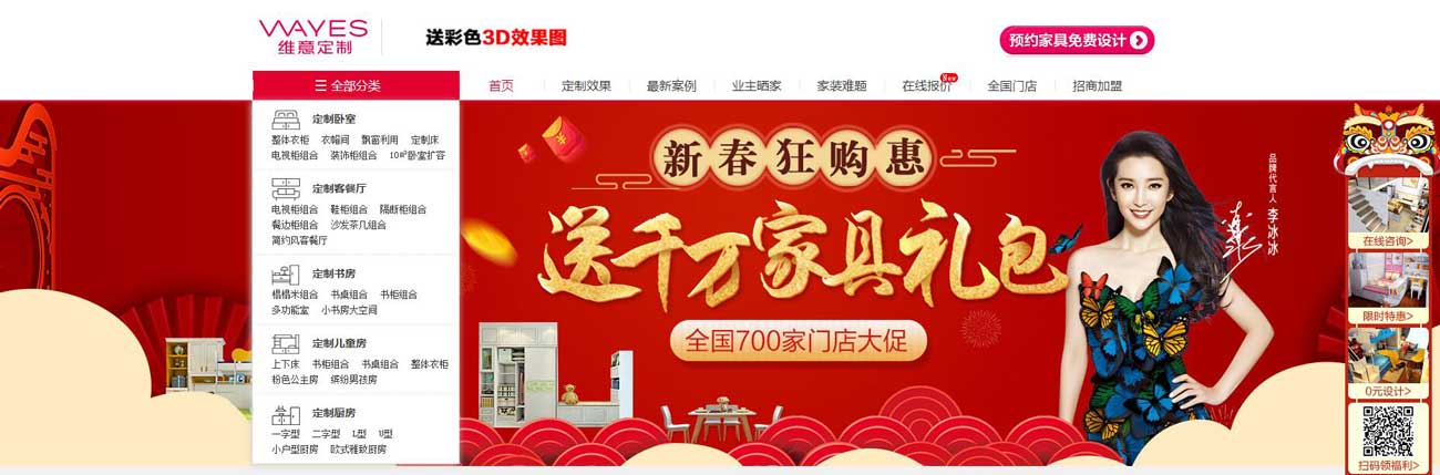 維意定制網站模板下載,包含源代碼、樣式、代碼、演示。主要有定制效果、最新案例、業主曬家、家裝難題、在線報價、全國門店、招商加盟、公司簡介、公司新聞、視頻報道、聯系我們、發展歷程、資質榮譽、企業動態、社會公益等欄目。